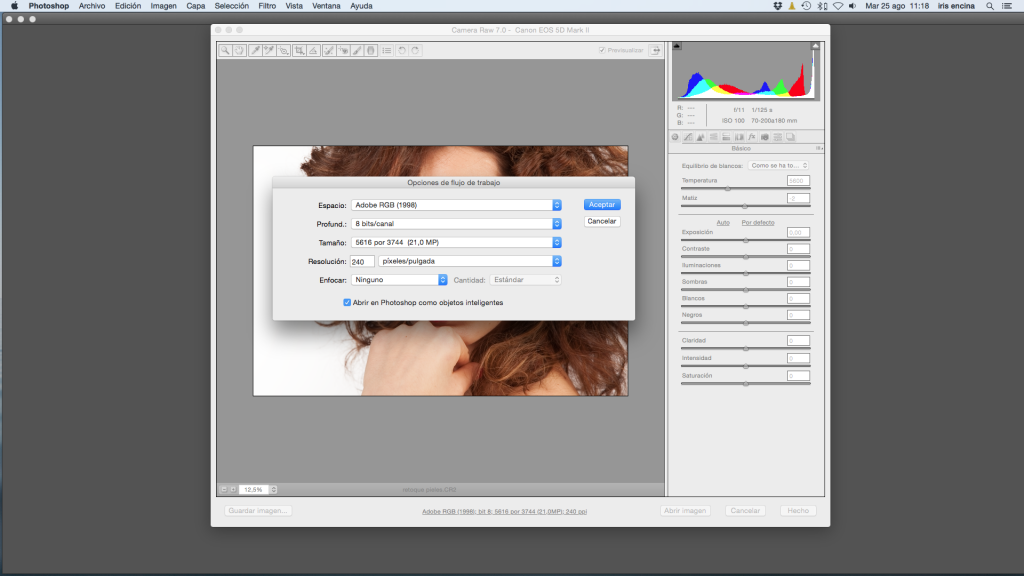 1. Editamos la imagen con Camera Raw  fijándonos única y exclusivamente en la piel